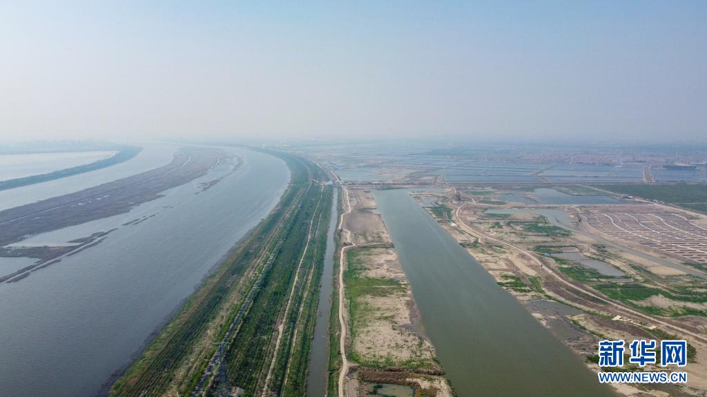 這是4月27日拍攝的天津獨流減河(左)與西西海生態(tài)濕地(右)(無人機照片)。新華社發(fā)(孫凡越 攝)