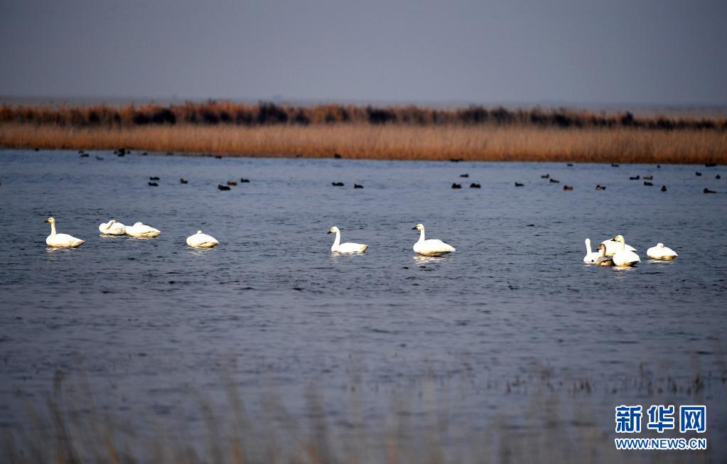 2020年11月12日,天鵝在天津北大港濕地自然保護(hù)區(qū)棲息。新華社記者趙子碩 攝