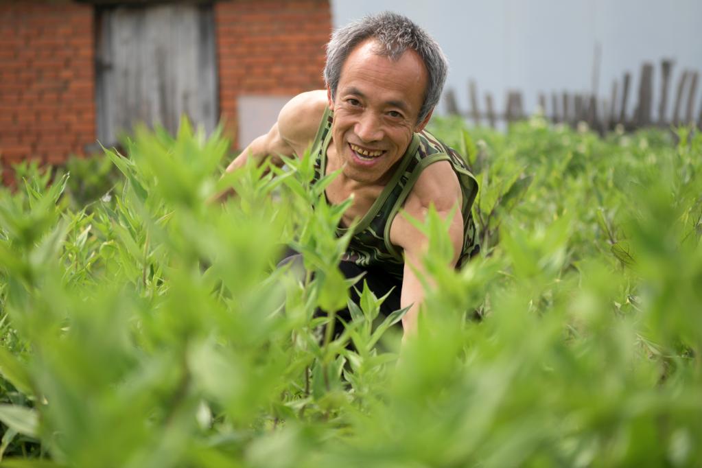 在望奎縣海豐鎮(zhèn)恭頭一村的自家園子里,脫貧戶曹洪奇在清理龍膽草中的雜草(2020年7月4日攝)。新華社記者王建威攝