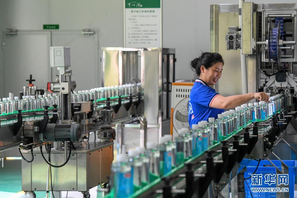 湖南省湘西土家族苗族自治州花垣縣十八洞村村民在十八洞村山泉水廠工作(2019年9月3日攝)。新華社記者 陳澤國(guó) 攝