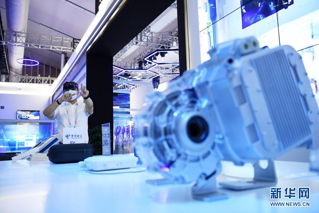 在重慶舉行的2020線上中國國際智能產(chǎn)業(yè)博覽會上,工作人員演示“5G+AR遠(yuǎn)程運維技術(shù)”(2020年9月15日攝)。新華社記者 唐奕 攝