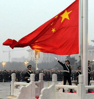 雄壯的中華人民共和國國歌在人民大會堂響起。2011年7月1日上午10時,慶祝中國共產(chǎn)黨成立90周年大會在這里隆重舉行。走過90年風(fēng)雨征程,中國共產(chǎn)黨引領(lǐng)社會主義中國站在新的歷史起點,擔(dān)負(fù)起新的歷史使命。
