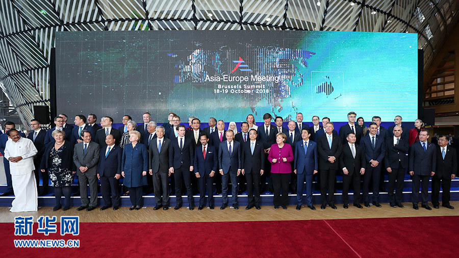 當?shù)貢r間10月19日上午,國務(wù)院總理李克強在布魯塞爾出席第十二屆亞歐首腦會議。這是與會領(lǐng)導(dǎo)人合影。 新華社記者 丁海濤 攝