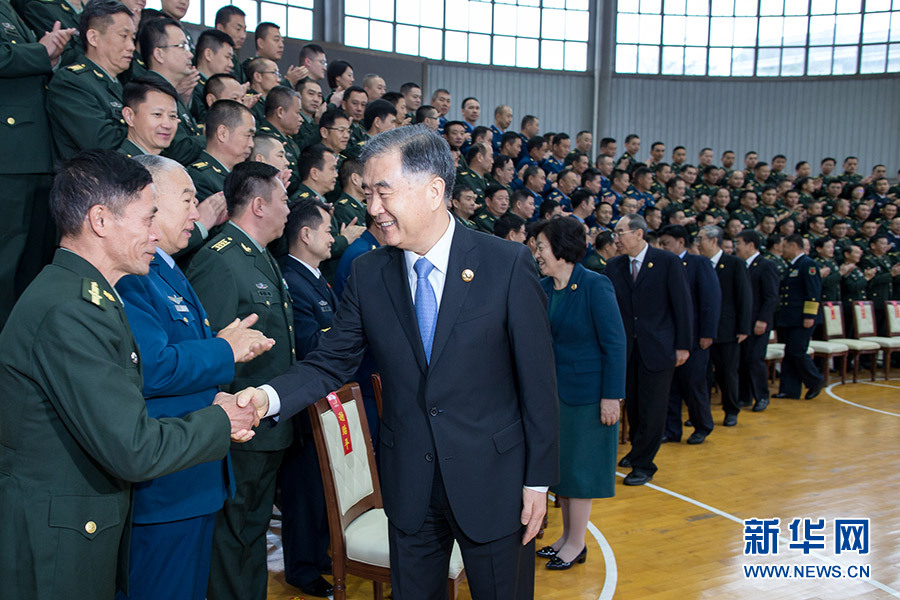 12月9日,中共中央政治局常委、全國(guó)政協(xié)主席、中央代表團(tuán)團(tuán)長(zhǎng)汪洋率代表團(tuán)部分成員分別赴廣西軍區(qū)、武警廣西總隊(duì)慰問(wèn),并會(huì)見(jiàn)自治區(qū)政法系統(tǒng)代表。這是汪洋慰問(wèn)廣西軍區(qū)和駐桂部隊(duì)官兵代表。 新華社記者 劉彬 攝