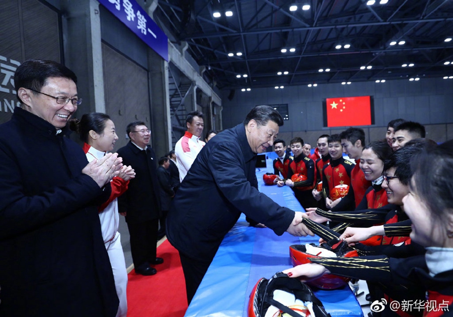 在位于北京石景山首鋼園區(qū)的國家冬季運動訓(xùn)練中心,習近平先后走進速滑館和冰壺館,看望慰問備戰(zhàn)的運動員、教練員?!坝?xùn)練強度大不大?”“從事這項運動多長時間啦?”“生活上有哪些困難?”“國際上哪些競爭對手最強?”總書記問得仔細。得知運動員們充滿信心,總書記十分欣慰。他勉勵大家說,舉辦北京冬奧會、冬殘奧會,中國冰雪運動將會上一個大臺階。這是百年不遇的歷史機遇,會應(yīng)運而生一批高水平優(yōu)秀運動員。習近平強調(diào),體育強則國家強,國家強則體育強。通過北京冬奧會把我國冬季冰雪運動發(fā)展起來,這就是我們的希望。(記者張曉松、鞠鵬、謝環(huán)馳、劉彬)?