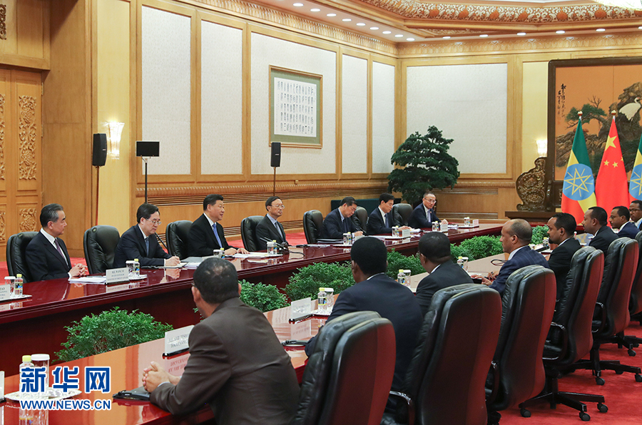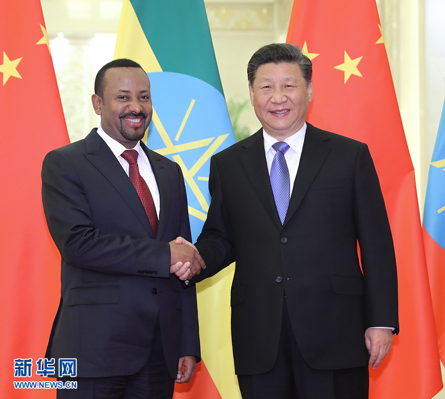4月24日,國家主席習(xí)近平在北京人民大會堂會見埃塞俄比亞總理阿比。 新華社記者 丁林 攝