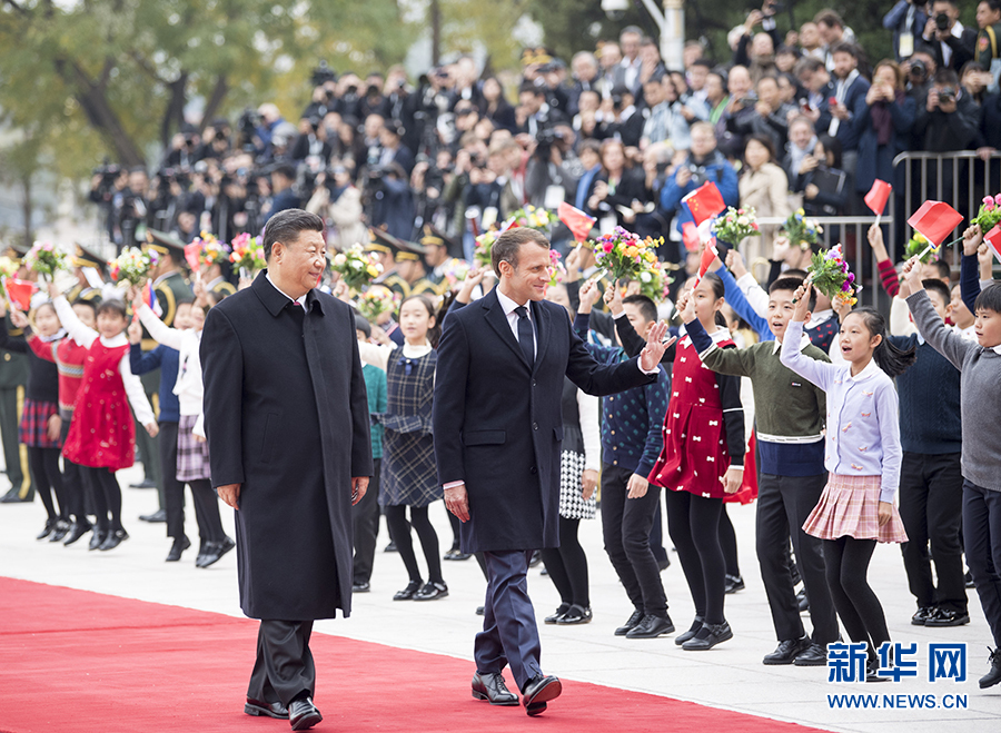 11月6日,國家主席習(xí)近平在北京人民大會堂同法國總統(tǒng)馬克龍會談。這是會談前,習(xí)近平在人民大會堂東門外廣場為馬克龍舉行歡迎儀式。新華社記者 燕雁 攝