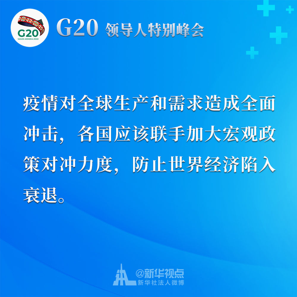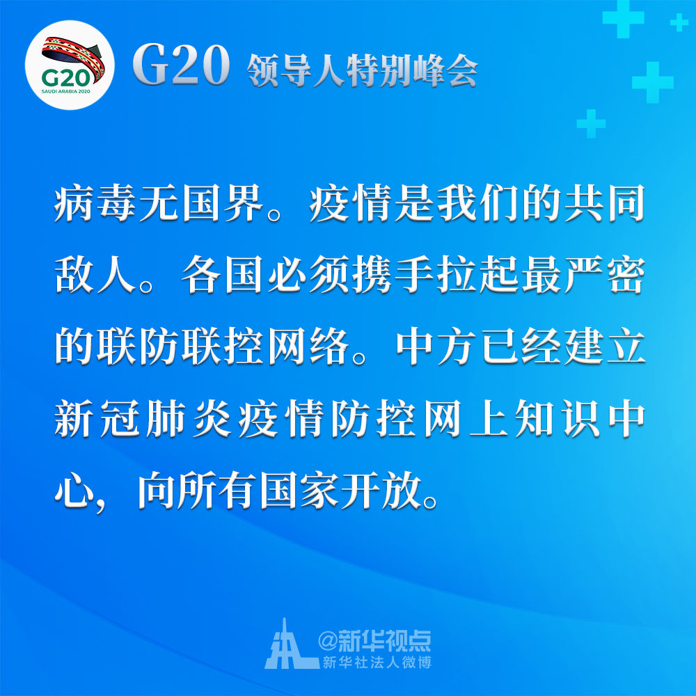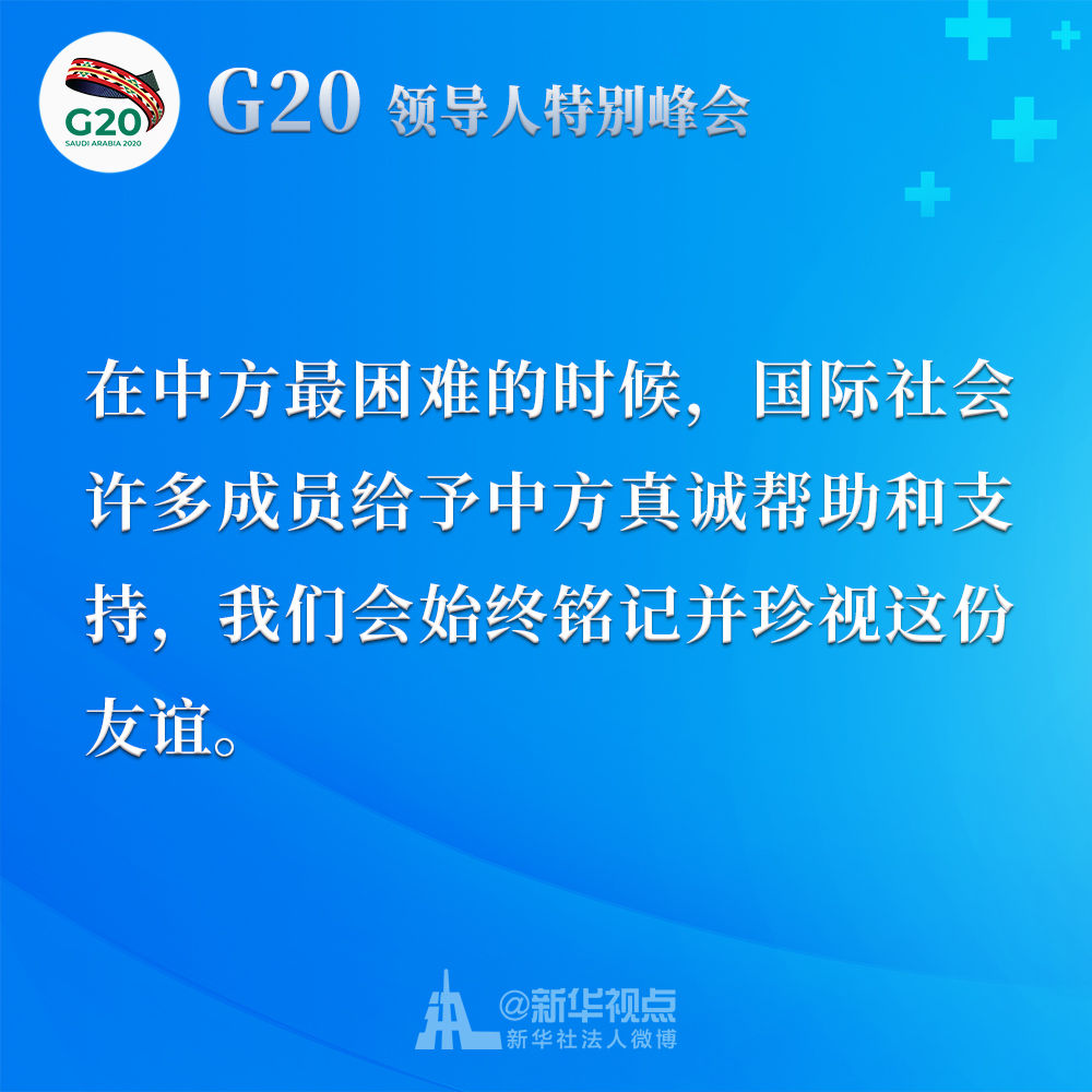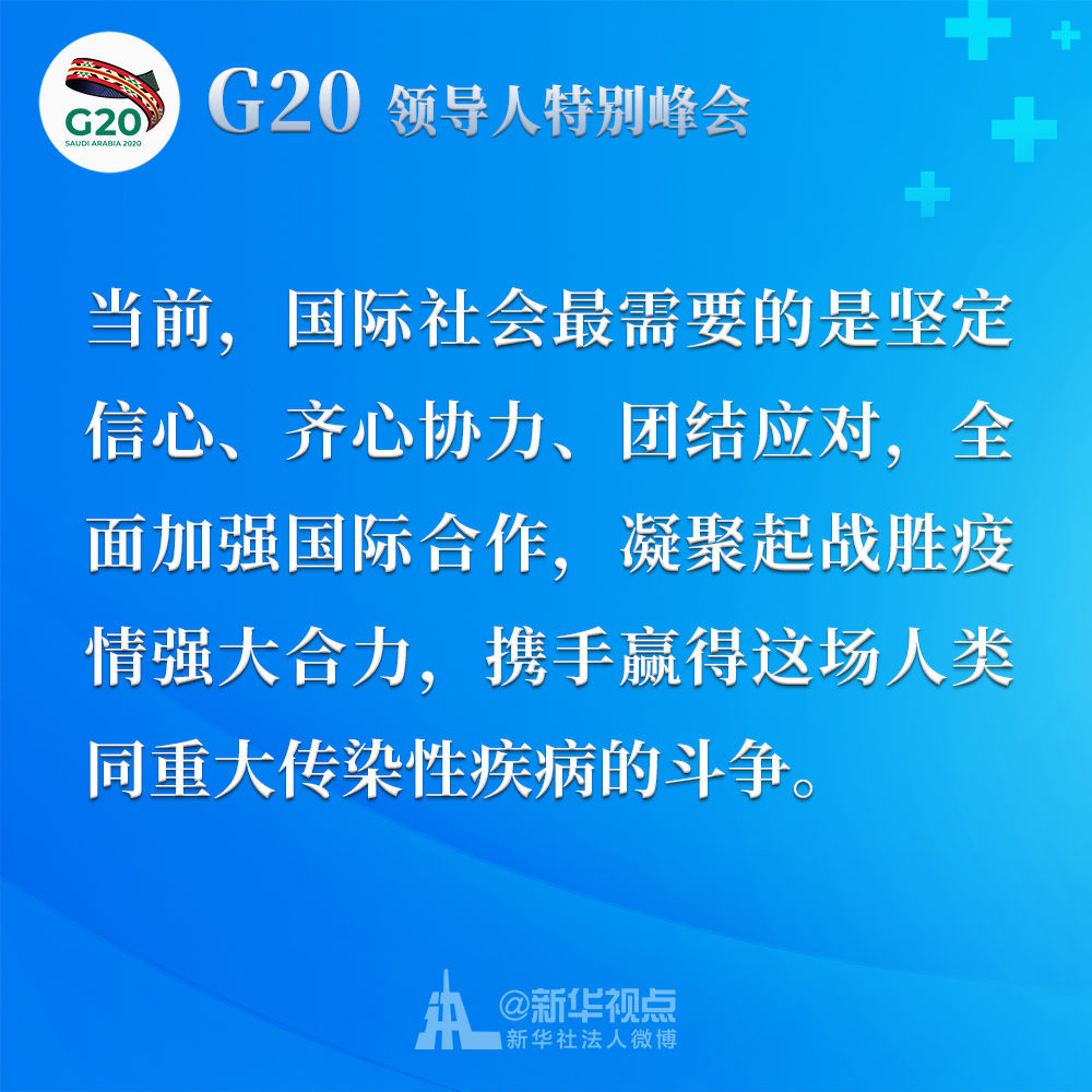 習(xí)近平在二十國集團領(lǐng)導(dǎo)人應(yīng)對新冠肺炎特別峰會上重要講話金句↓