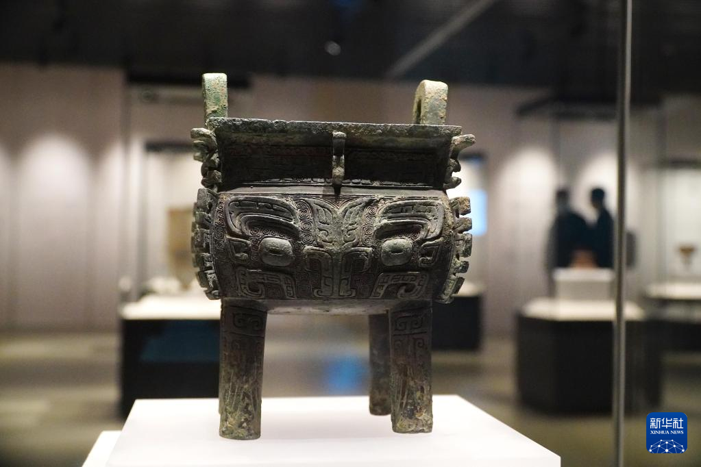 2月9日,在孔子博物馆举行的山东文物精品展上拍摄的山东博物馆收藏的商代举方鼎。