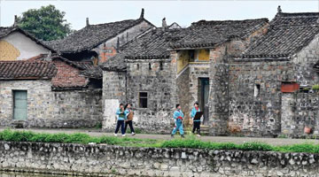 这是4月12日拍摄的诸暨市东白湖镇有着百年历史的斯民小学(无人机照片)。