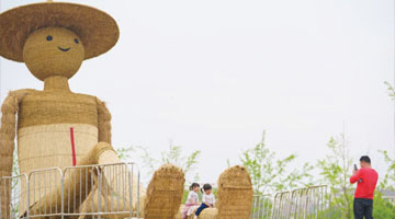 4月20日,观众在展览上观看荷鲁斯雕像。