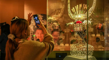 5月24日,在香港会议展览中心,参观者欣赏拍品。新华社记者 陈铎 摄