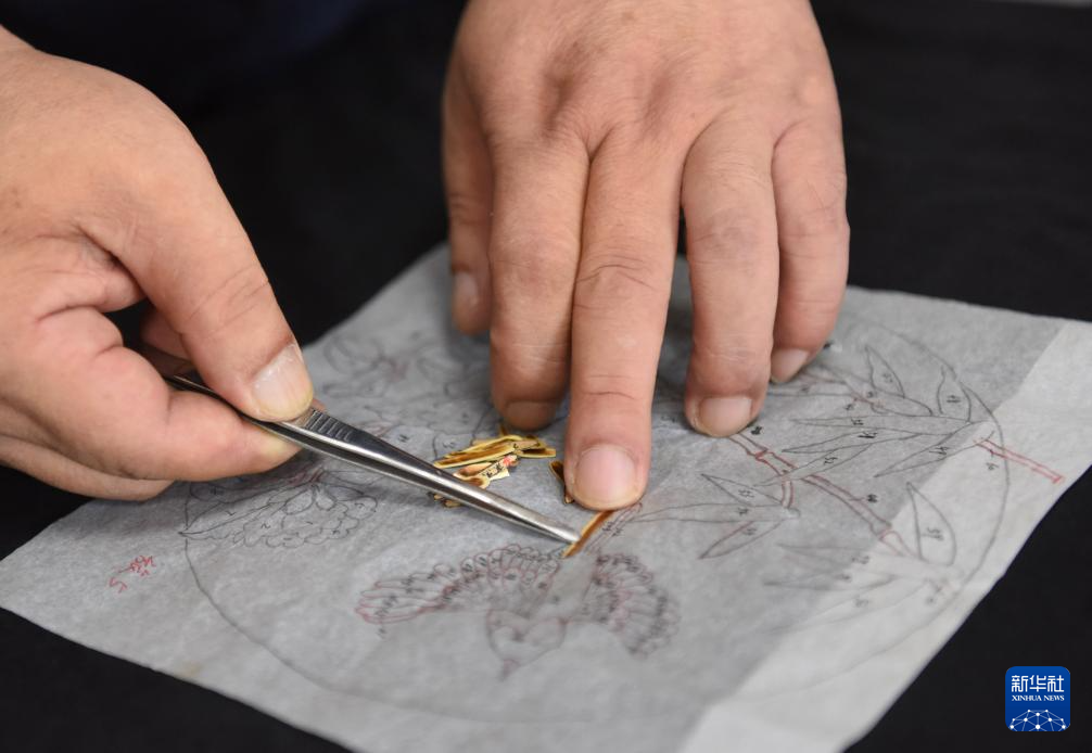 7月12日,吴永龙将拼好的一朵“花”放在底版上比对。