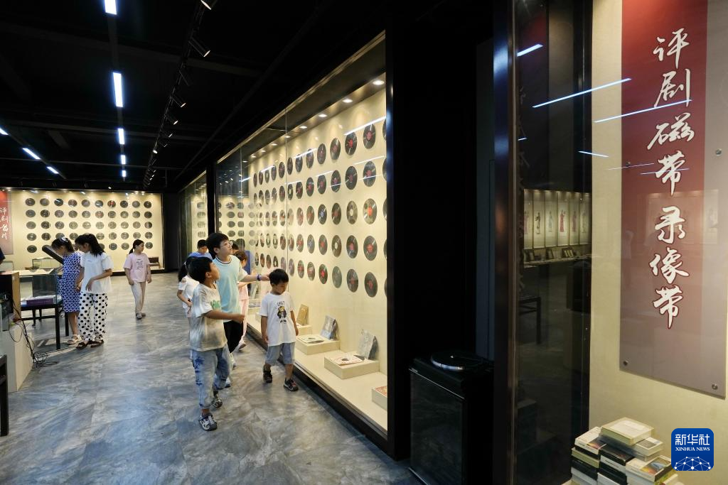 7月21日,孩子们在位于河北省滦州市的中国评剧艺术馆内参观。
