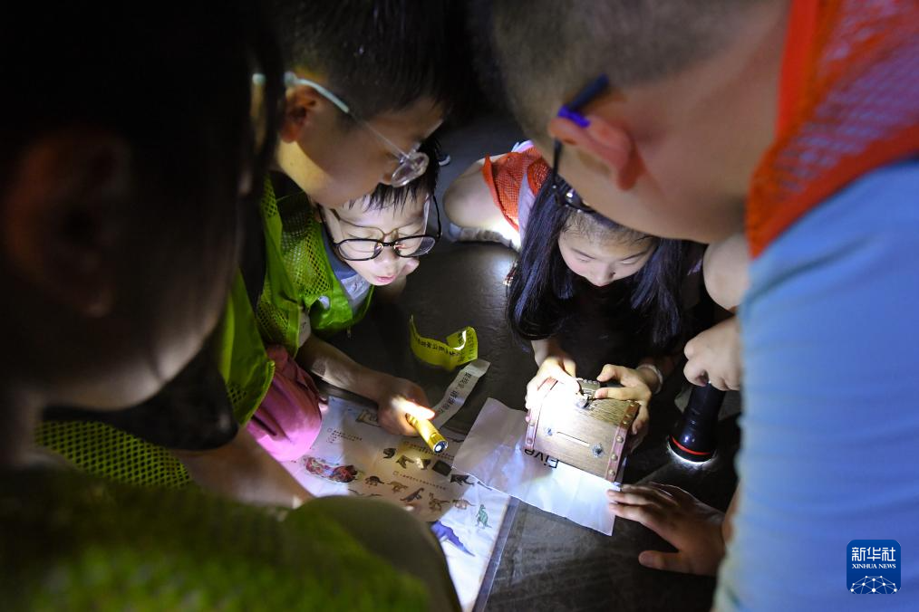 暑假期间,浙江自然博物院安吉馆开启夜游项目,以游戏闯关、扎营夜宿等形式让孩子们对博物馆进行深度探索,培养对自然的好奇心。