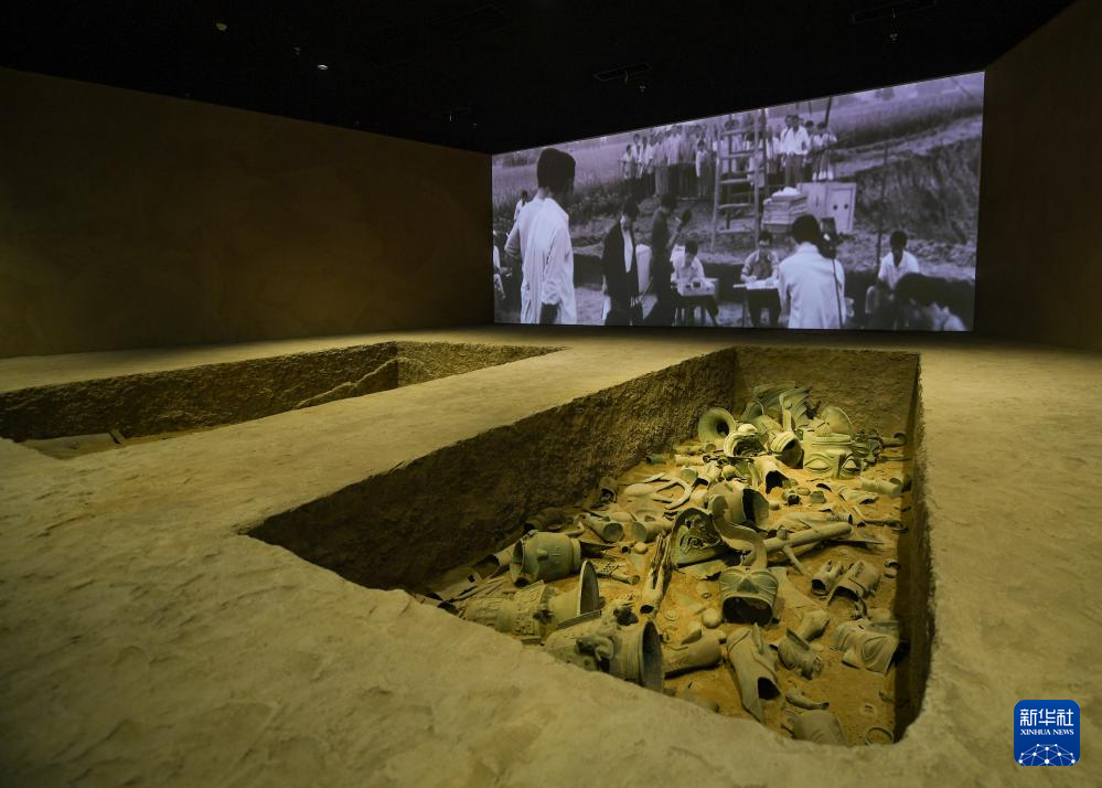 7月26日在三星堆博物馆新馆拍摄的还原发掘现场情景展陈。