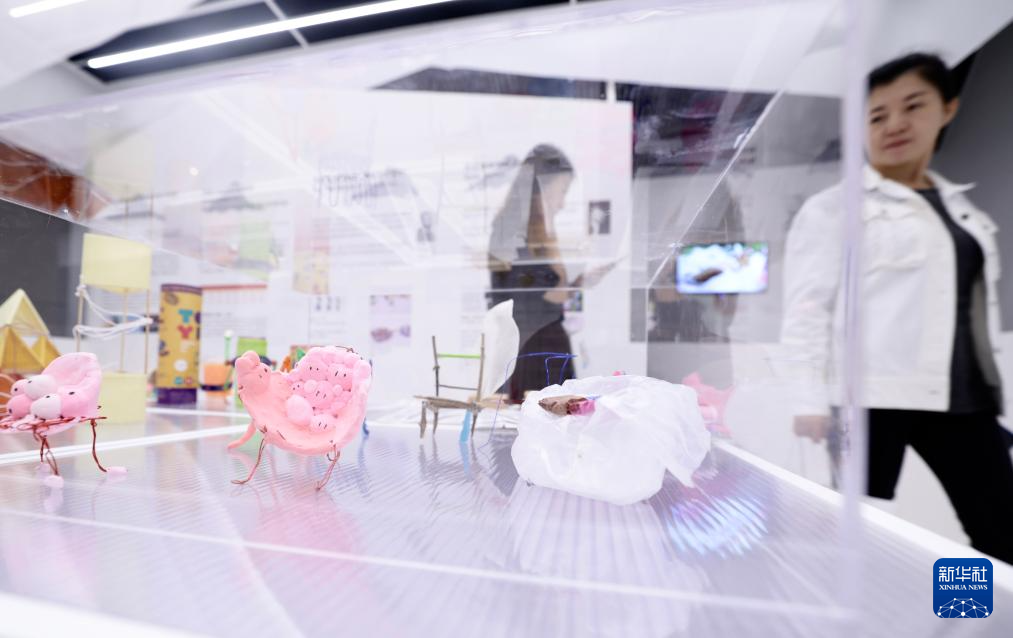 9月25日,参观者在“童思筑梦——儿童设计美育新时代”北京国际儿童设计创新体验展上观看展品。