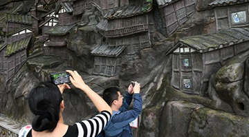 10月18日,人们在加拿大安大略省米西索加举办的灯展上参观。
