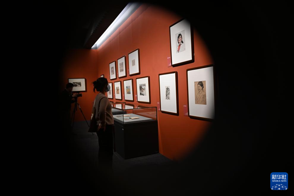 12月12日,观众在中国国家博物馆参观画作《永远做最可爱的人》(左)和印刷海报《永远做最可爱的人》。