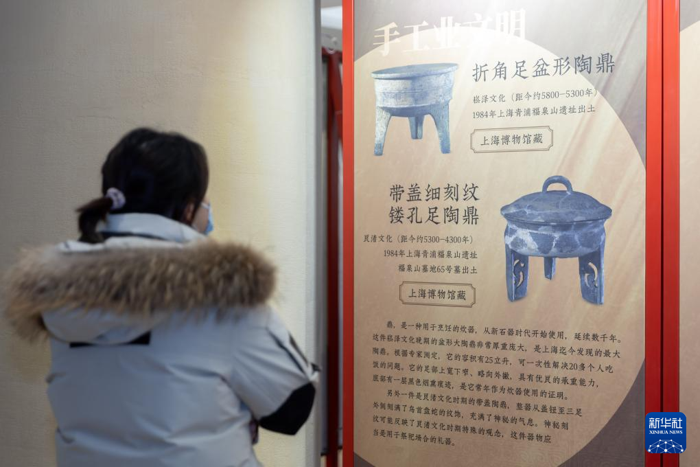 12月23日,人们在轻游戏中寻找“实证中国——崧泽·良渚文明考古特展”中的代表性文物。