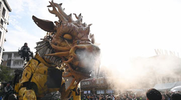 12月27日,观众在展览现场观看介绍热贡艺术的书籍资料。