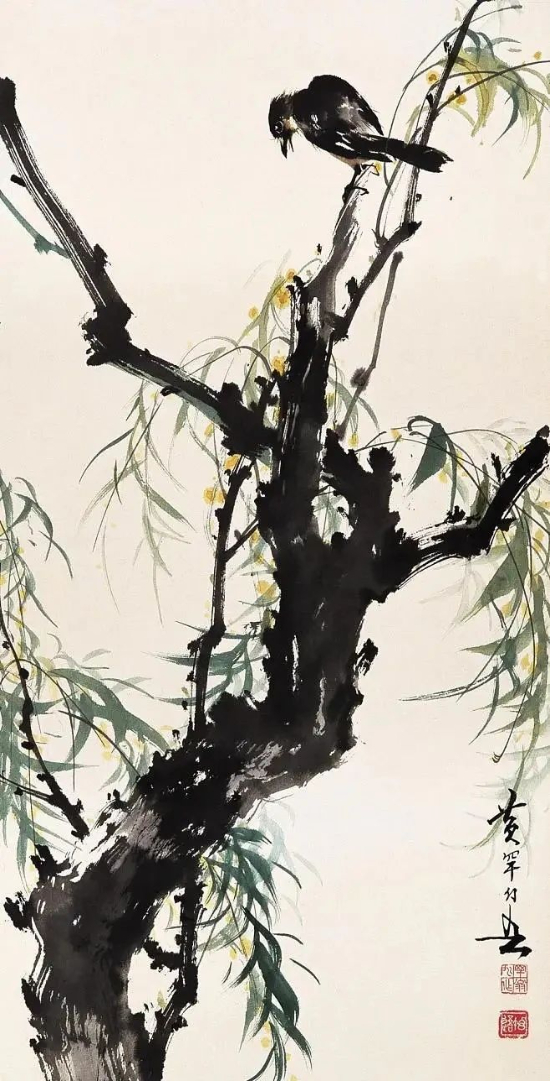 黄幻吾(1906.9-1985.7),名罕,字幻吾,号罕僧,晚年称罕翁。黄幻吾的绘画被评论为:“精研国画,善绘山水、人物、花卉、鱼虫、鸟兽,尤以花鸟画、山水画功夫独到,刻划真切动人、栩栩如生”。他的作品富有新意,清新秀丽,生机盎然,能把水墨、彩色熔铸一炉。他笔下的柳树气韵飘逸,树上的鸟儿也真切动人、栩栩如生,做到了情调美、色彩美、构图美、形象美。