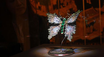 5月11日,参观者在希腊雅典扎皮翁宫欣赏天龙山石窟艺术展品。