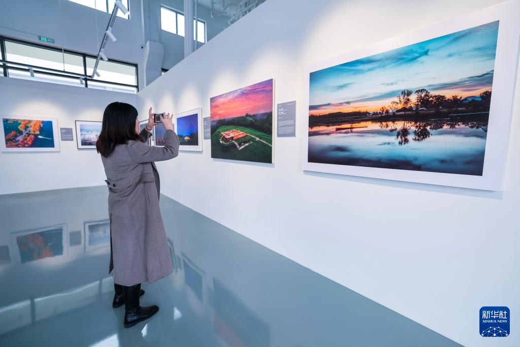 11月25日,观众在“人类的记忆——中国世界遗产”摄影展上拍照。