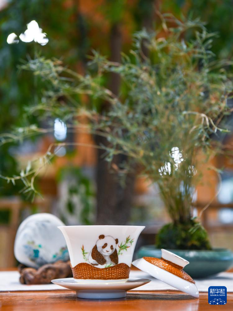 新华全媒+|“熊猫抱竹”绕纤丝 非遗盖碗飘茶香