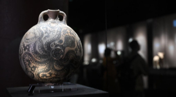 4月24日,人们参观卡塔尔多哈卡塔拉文化村举行的中卡书法交流展。