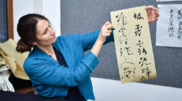 12月10日,观众在中国美术馆观赏展出作品《和而不同》。