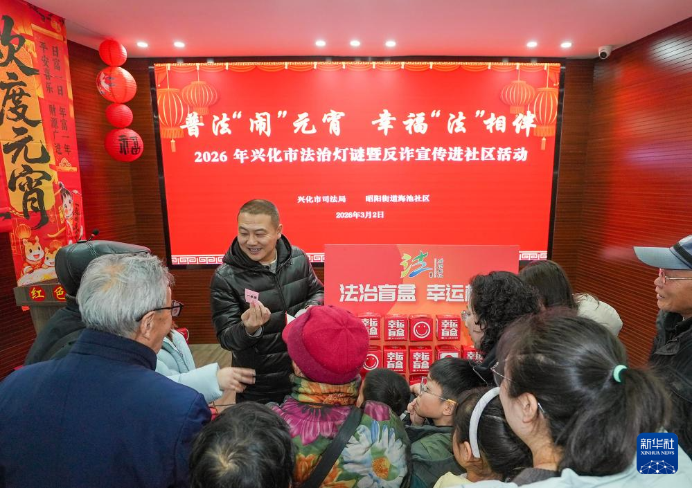 3月2日,人们在江苏省兴化市昭阳街道海池社区参与元宵特别普法活动。