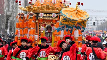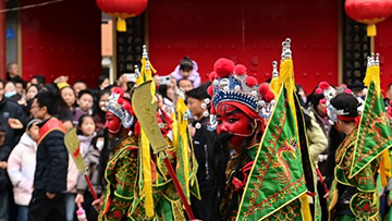 这是3月2日在豫园商城拍摄的民俗文化演出现场。