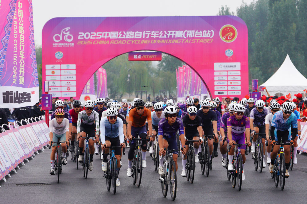 图为2025中国公路自行车公开赛(邢台站)在邢台市开赛。受访单位供图