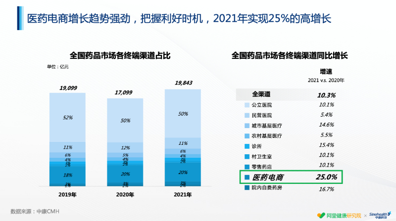 中康科技还预测,依托“医+药”逐渐成熟的闭环生态,以及全场景专业药事服务,未来数年医药电商将持续翻倍增长。