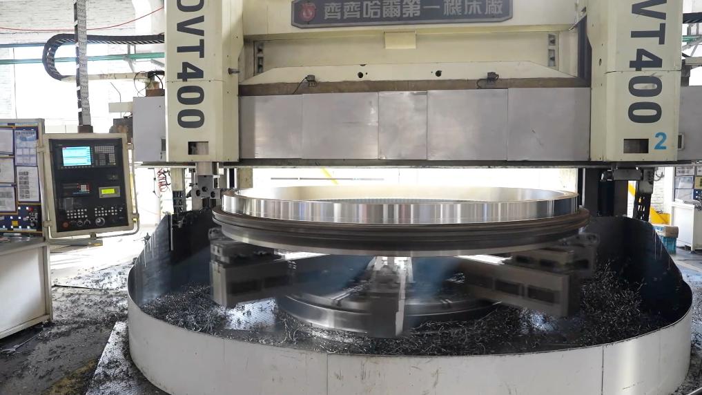在洛轴集团风电轴承生产车间,一排排机床正井然有序地加工着一批风电偏航轴承。