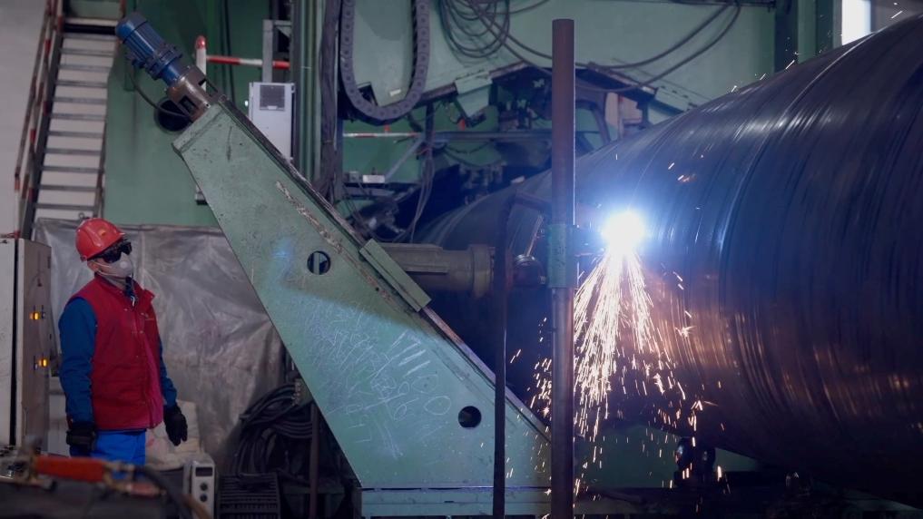 在中油宝世顺(秦皇岛)钢管有限公司新能源管材厂的生产车间内,工人们正全力以赴保障长春至石家庄天然气管道工程所需钢管供应。通过技改创新,企业在一套生产线上实现了两种生产工艺的快速转换,有效提高了生产效率和产能。