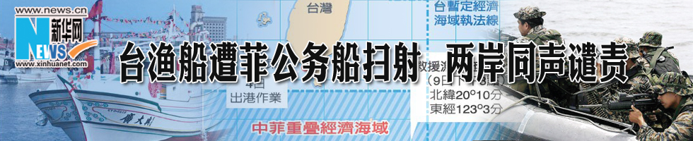 | · | 國臺辦強烈譴責菲律賓槍殺臺灣漁民的野蠻行徑 (05-09) |