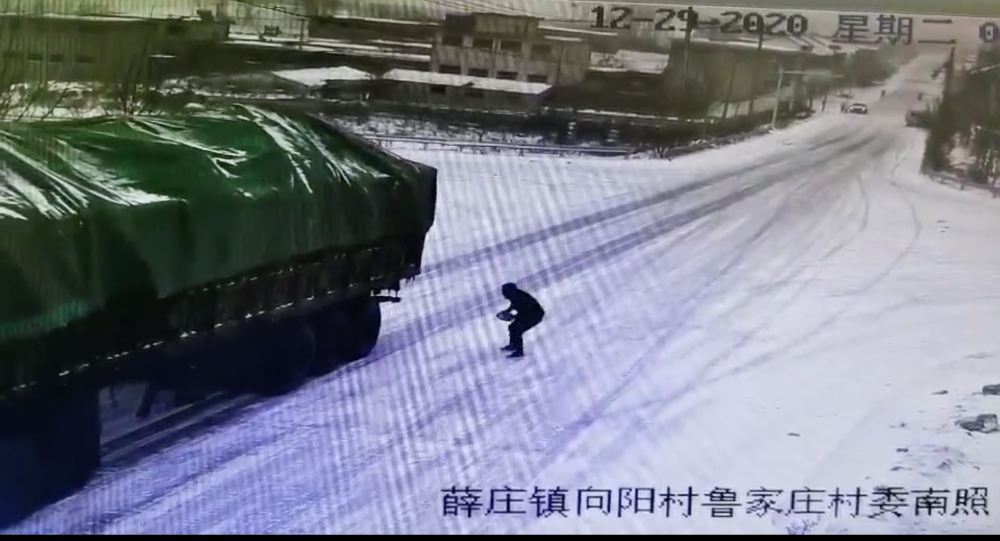 2020年12月29日,山東臨沂出現(xiàn)大雪降溫天氣,江蘇徐州一貨車在經(jīng)過費(fèi)縣時(shí),因積雪上坡道路結(jié)冰,司機(jī)緊急制動(dòng)于事無補(bǔ),車輛不斷下溜。