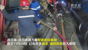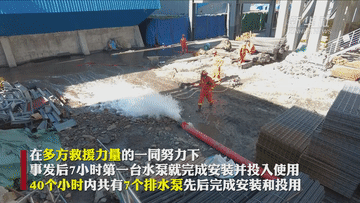 應急、消防、電力、衛(wèi)健等多部門人員正緊張有序開展工作。在多方救援力量的一同努力下,事發(fā)后7小時,第一臺水泵就完成安裝并投入使用。40個小時內,發(fā)生事故煤礦共有7個排水泵先后完成安裝和投用。