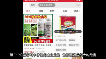 不少電商平臺(tái)賣(mài)家在銷(xiāo)售“甲氰菊酯”“溴氰菊酯”等產(chǎn)品時(shí),專(zhuān)門(mén)標(biāo)注了“水產(chǎn)養(yǎng)殖戶(hù)清塘專(zhuān)用”“迷蝦”“捕蝦”等字樣。但賣(mài)家同時(shí)又提示:產(chǎn)品對(duì)魚(yú)蝦有毒,請(qǐng)遠(yuǎn)離池塘河流,謹(jǐn)慎使用。