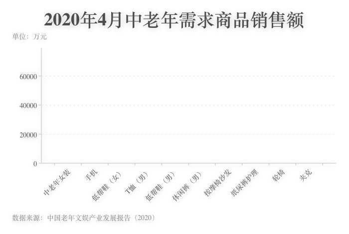 ????? 艾瑞數(shù)據(jù)顯示,2020年4月,銷售額排名前三的中老年需求商品中,2類商品為女性消費品,其中中老年女裝的銷售額是排名第二的手機的2倍,反映了中老年女性比男性具有更強的消費需求。