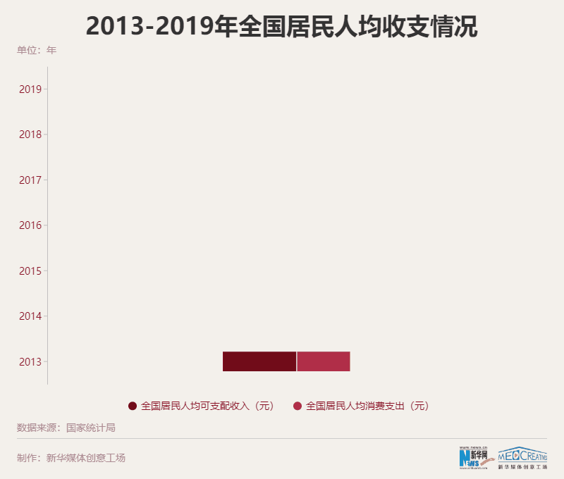 2013-2020年,平均每年新增就業(yè)人數(shù)均超過1300萬,全國居民人均可支配收入從18311元增長至32189元,全國人均消費支出從13220元增長至21210元,翻了將近一番。
