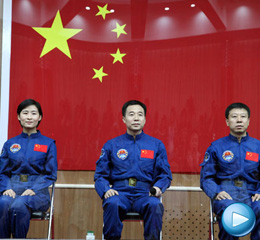 執(zhí)行天宮一號與神舟九號載人交會對接任務(wù)航天員乘組與記者見面
