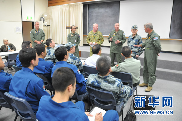 ????3月22日,中國(guó)空軍飛抵澳大利亞珀斯皮爾斯空軍基地后,與澳大利亞空軍就搜救工作交換意見。新華社記者 黃書波 攝