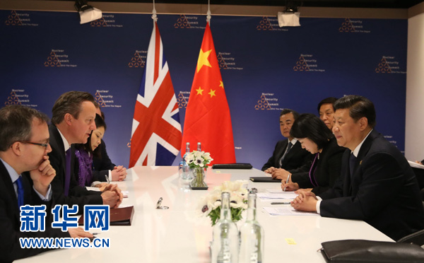 3月25日,國家主席習(xí)近平在荷蘭會(huì)見英國首相卡梅倫。新華社記者劉衛(wèi)兵攝