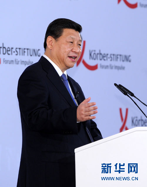 ??? 當(dāng)?shù)貢r間3月28日下午,國家主席習(xí)近平應(yīng)德國科爾伯基金會邀請,在柏林發(fā)表重要演講。 新華社記者 饒愛民 攝