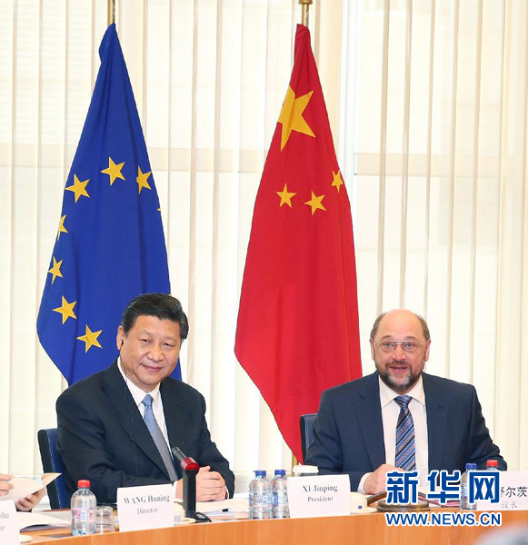 ????3月31日,國家主席習(xí)近平在比利時布魯塞爾會見歐洲議會議長舒爾茨。 新華社記者 馬占成 攝
