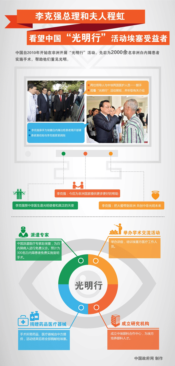 圖解:李克強和夫人看望中國“光明行”活動埃塞受益者