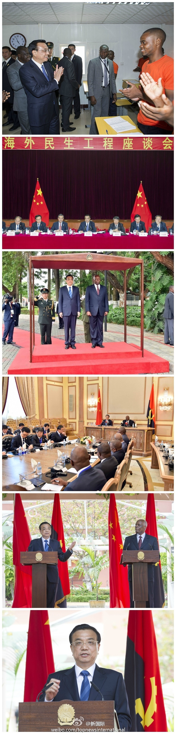 ????新華網(wǎng)北京5月10日電? 據(jù)新華社“新國際”微博報道,從8日下午抵達到9日下午離開,李克強先后參觀中信百年職校、召開中國首次海外民生座談會、慰問援安醫(yī)療隊、與安總統(tǒng)舉行大小范圍會談、共見記者……短短23個小時密集展開14場活動,達成多項共識簽署多項協(xié)議,旋風(fēng)訪問取得豐碩成果。?